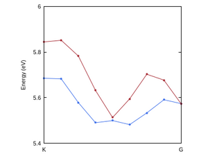 The dispersion along G-K path for the two lowest excitons in bulk hBN is shown in the figure.